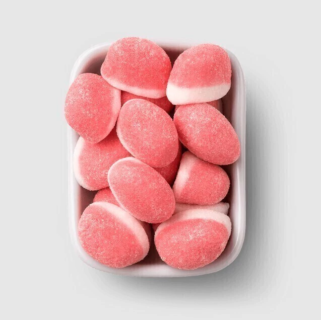 Um doce e irresistível beijo de morango! Bala de gelatina cheia de sabor!