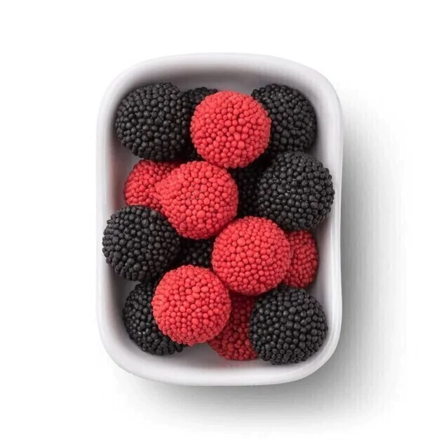 As mini amoras, além de lindas, são gostosas igual fruta direto do pé! As vermelhas são de frutas vermelhas e as pretas de blueberry! Cada caixa tem 12 pacotes de 15g.