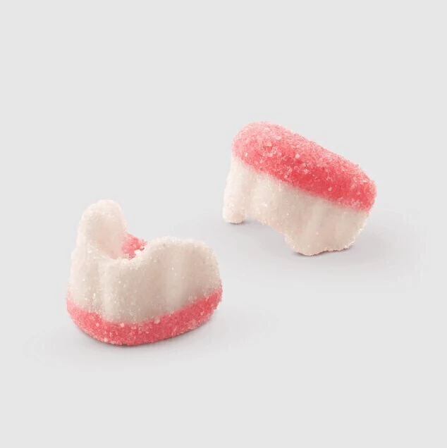 A clássica bala de gelatina Dentes de Vampiro em miniatura, super fofa e saborosa! E ainda por cima, com cobertura azedinha! Cada caixa vem com 12 pacotes de 15g.