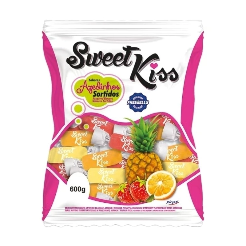 Com uma embalagem moderna e deliciada, a Riclan traz para o mercado a nova Bala Sweet Kiss nos deliciosos sabores frutais azedinho laranja, limão, abacaxi e morango. Apaixona-se e aproveite!