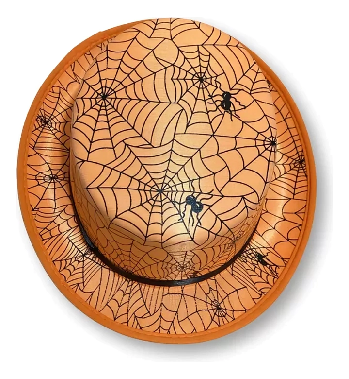 Chapéu Cartola Laranja com Teia de Aranha para Fantasias