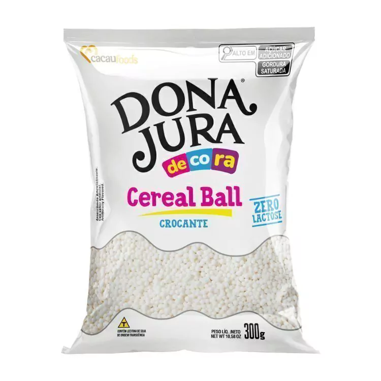 CEREAL BRANCO Cereal de arroz (farinha de arroz, açúcar, sal e carbonato de cálcio), cobertura branca (açúcar, dextrose anidra, gordura vegetal fracionada, emulsificante lecitina de soja (INS 322), sal, polirricinoleato de poliglicerol (INS 476), aromatizante e STS (INS 492)), açúcar e xarope de glicose e glaceante (INS 904). ALÉRGICOS: NÃO CONTÉM LACTOSE. NÃO CONTÉM GLÚTEN. CONTÉM DERIVADOS DE SOJA. CONTÉM, NA COMPOSIÇÃO, ALIMENTO GENETICAMENTE MODIFICADO.