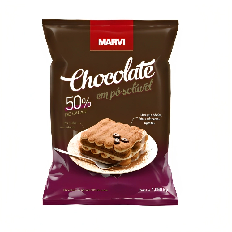O Chocolate em pó 50% Cacau Marvi é feito com matérias-primas de primeiríssima qualidade, pode ser aplicado em preparos de bolos, pães, recheios, caldas de chocolate, coberturas, bebidas e sobremesas em geral.