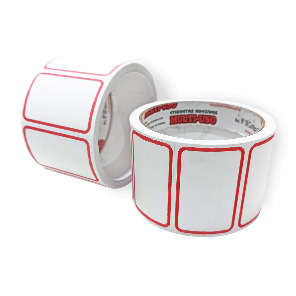 Etiqueta multiuso, adesivas utilizadas para marcação, codificação de produtos, uso manual. Tendo em sua composição papel auto adesivo branco fosco, adesivo à base de resinas acrílicas. Indicado para marcação manual em produtos em geral e com tarja vermelha para sinalização.