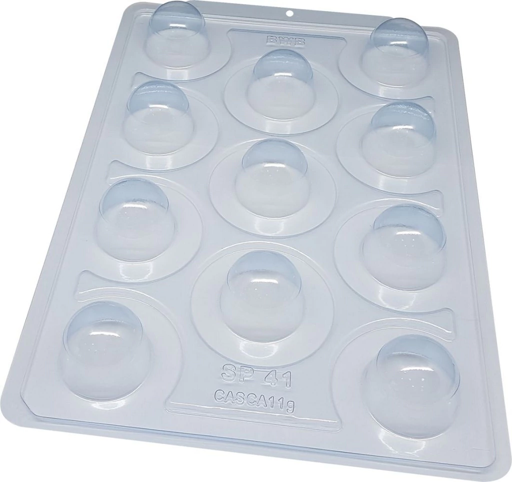 A forma SILICONE ESPECIAL TRUFA PEQUENA SP41 modelo 3501(composta por 3 partes), é ideal para produção de chocolates com muito mais praticidade e precisão. É um tipo de plástico que tem boa flexibilidade, permitindo a torção da forma, isto facilita no momento de desenformar o chocolate, pois permite que você pressione o chocolate e torça levemente a forma para o chocolate soltar. A forma possui uma “marquinha” indicando a quantidade necessária de chocolate, levando para geladeira uma única vez. Ela proporciona uma casca uniforme e um acabamento perfeito sempre com o mesmo peso.