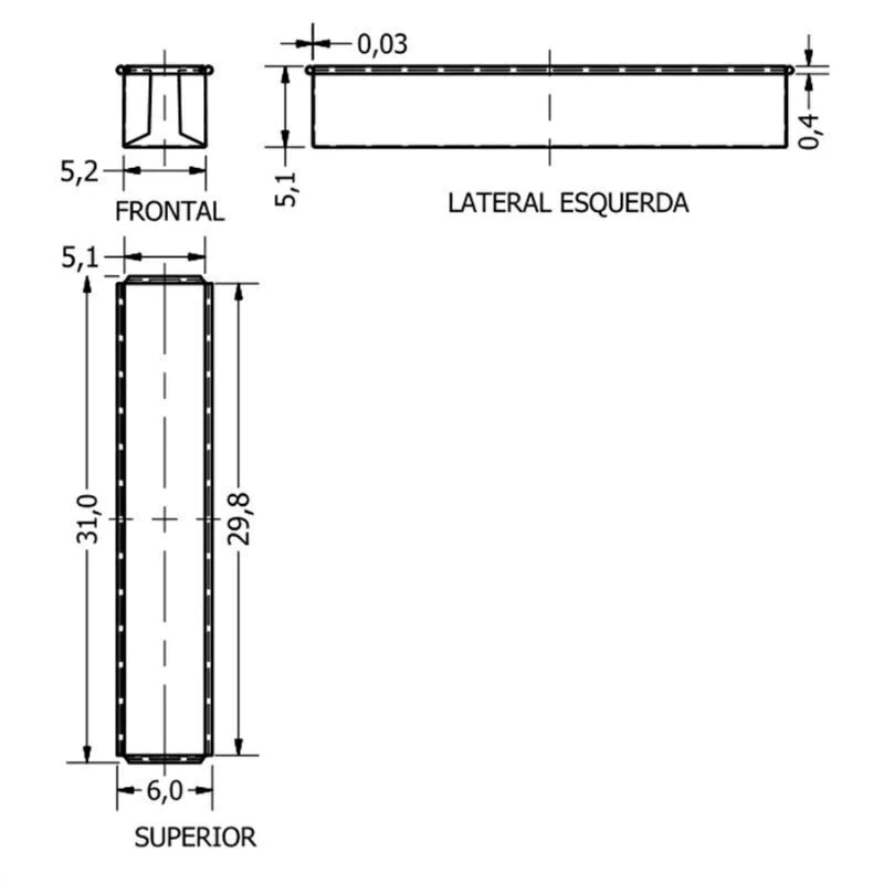 Comprimento: 30 cm - Largura: 5 cm - Altura: 5 cm